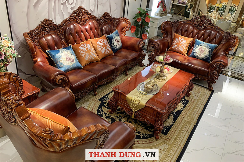 Sofa da phong cách Châu Âu bán cổ điển, với chất liệu bằng da bò Italy thượng hạng luôn đem đến cảm giác mềm mại và thoáng mát khi sử dụng, khung sườn của ghế làm bằng gỗ tự nhiên sơn men chống trầy sướt, chịu được nhiệt độ cao, và chạm khắc hoa văn tinh tế, luôn đem đến một không gian sống thật đẳng cấp và sang trọng cho ngôi nhà bạn.
