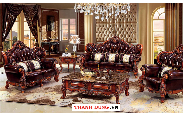 Sofa da phong cách Tân cổ điển hạng phổ thông, được sản xuất bởi các nhà máy phổ thông có chất lượng sản phẩm trung bình và mức giá phù hợp với nhu cầu mua sắm bình dân.